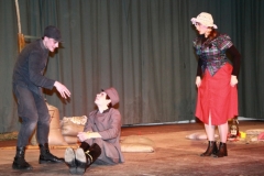 Die jungen Schauspieler arbeiteten sich auf der Bühne schnell ein. Zur Unterstützung der grotesken Figurenbeziehungen entschied sich die Regisseurin Kurjanova zur Verwendung ausdrucksstarker Kostümierung. Die Requisiten mussten transportabel sein, waren auf prägnante Aspekte beschränkt – daher legte die Gruppe besonderen Wert auf die schauspielerischen Ausdrucksmöglichkeiten. Die Spannung in der Handlung lebte von der Darstellung emotionaler Schwankungen, die zwischen Freude, Enttäuschung, Trauer, Verblüffung, Schock, Angst, Qual, Ratlosigkeit in allen Facetten in den Charakteren angelegt waren und wechselweise sehr lebendig hervortraten. Eben dieser Schwerpunkt der Umsetzung menschlicher Gefühlsschwankungen war deutlich zu erkennen. Immerhin, so die Ankündigung des TfK, handelt „die Farce von dem grausamen Geheimnis einer eifersüchtigen Witwe, das von zwei Pseudo-Anstreichern im Laufe überraschender Ereignisse und neuer Entwicklungen entdeckt wird.“ Hauptsächlich bezieht dieses Stück im Kern der Entfaltung und Lösung des Grundkonflikts seine Kraft aus der psychologischen Grundanlage aus Abhängigkeit und Ausgeliefertsein, Verrat und Treue, Offenheit und Verborgenheit, Anhänglichkeit und Gleichgültigkeit.