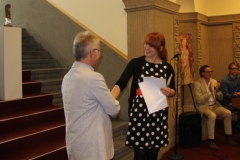 Zu unserer Überraschung ist auch Katja Khramova aus Halle an der Saale angereist. Fünf unserer Smolensker Mitglieder dürfen wir begrüßen und es entwickeln sich sofort muntere Gespräche. Bei der Zusammensetzung der Gesellschaft ist das kein Wunder. Die Moderationen werden besprochen und noch überarbeitet und nette Geschichten werden berichtet – zwei unserer Smolensker Preisträger sind ein Paar geworden. So etwas kann leicht passieren, wenn sich eine junge Russin und ein junger Russe im Sommer in Hagen treffen.