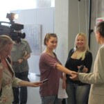 Das Teneshewa-Kulturzentrum füllt sich zusehends mit Menschen. Viele, auch junge Frauen, tragen lange Abendkleider und die Stimmung ist sehr festlich. Nachdem Aleksei das Projket vorgestellt hat, stellen wir die Preisträgerinnen und Preisträger vor. Das stellvertretende Stadtoberhaupt, Herr Levand, übermittelt Grüße der Stadt und drei Fernsehsender (Film von REN-TV), sowie zahlreiche Zeitungen filmen und interviewen die Preisträger, deren Werke und das Publikum. Selbstverständlich werden Geschenke und Blumen überreicht.