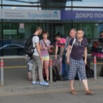 Um 12 Uhr treffen wir uns, wie vereinbart, und fahren zum Kiewskij-Bahnhof. In der Wartehalle zum Aero-Express gibt es einen Kiosk, an dem große Kartoffeln mit unterschiedlichen Saucen angeboten werden. Hier schlagen die hungrigen Mäuler zu, denn sie haben es nicht geschafft allein zum Essen zu gehen. Der gut gekühlte Zug transportiert uns in 40 Minuten zum Flughafen. Unser Fahrer ist geschwind zur Stelle und lädt die Koffer aus. Sandra öffnet noch einmal kurz ihr Gepäck, um Lena die Bilder von „de Cleur“ wiederzugeben, die sie versehentlich eingepackt hat. Schnell lege ich noch mein Taschenmesser in ihren Koffer, damit es mir bei den Kontrollen nicht abgenommen wird. Das Einchecken ist wesentlich angenehmer als in Düsseldorf. Überhaupt ist der Flughafen Wnukowo weitläufiger und auch weniger überlaufen als die beiden anderen Moskauer Flughäfen. Es gibt bequeme Wartebereiche, doch kostet hier ein kleiner Kaffee fünf Euro. Alles hat eben einen Haken.
