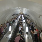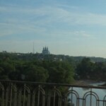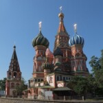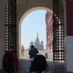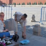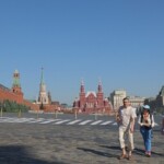 Nach ca. drei Stunden sind wir in Moskau und schon ist der Stau unser Begleiter. Immer mehr Hochhäuserstädte schießen vor den Toren Moskaus aus dem Boden – hier wird in großem Stile Geld verdient. Leider kommt die Infrastruktur nicht mit. Hier gibt es keine U- oder S-Bahnen und die Straßen können das jetzige Verkehrsaufkommen kaum fassen. Jeden Morgen dieses Erlebnis zu haben nach Moskau zu fahren ist Stress in höchstem Maße. Die Autofahrer sind sehr aggressiv. Am schlimmsten sind jedoch die Motorradfahrer, die mit hohem Tempo zwischen den Autos daher preschen. Wir erleben den Stau ca. drei Stunden. Dann lässt uns unser Fahrer am Platz des Sieges aussteigen und fährt mit unseren Koffern zum Flughafen, um dort auf uns zu warten. Die U-Bahn bringt uns nach fünf Stationen zum Roten Platz. Es ist noch sehr ruhig am Morgen. Deshalb können wir das Leninmausoleum, den Kreml, die Kirche mit den Zwiebeltürmen, das Kaufhaus GUM … Der Blick von der Moskwa-Brücke auf den Kreml ist in der Morgensonne besonders schön.
