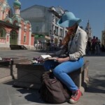 Es wird wieder einen heißen Tag geben. Doch in der Morgenkühle ist es angenehm zu gehen. Die Menschen, die mir begegnen, sehen sehr entspannt aus. Vorwiegend sind elegant gekleidete Frauen unterwegs. An vielen Stellen werden die Straßen und Plätze gefegt. Es ist sehr sauber in der Stadt. Im Park hinter und vor dem Kino Oktober arbeiten Frauen an der Gestaltung der Blumenbeete. Wie immer, es arbeiten die Frauen! Vor dem Kino gibt es keine Verkaufsbuden mehr. Eine Straßenbahnfahrerin tanzt gut gelaut in ihrer Kanzel mit ihren Armen und winkt mir zu, die Straße zu überqueren. Mit diesen ersten Eindrücken sitze ich in meinem Lieblingscafe und genieße das Frühstück.