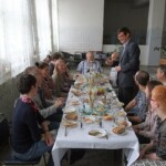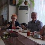 Zum Mittagessen treffen sich erstmals die Smolensker und Hagener Preisträger, aber auch unsere Gastgeber und Smolensker Mitglieder sind gekommen. Es herrscht alsbald eine tolle Stimmung, weil sich die Menschen schnell nahe gekommen sind. Sascha Savchenko lädt die ganze Gesellschaft für den Abend in sein Elternhaus ein.