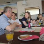 Es wir geredet, natürlich über Olga Textilien, die sie eigenhändig färbt und bemalt, unsere Preisträger erzählen über sich und die vielen Erlebnisse der letzten Tage, auch Nächte. In letztern ist Steffen besonders umtriebig gewesen, doch es hält sich alles im Rahmen. Die Speisen sind so köstlich, dass ein jeder tüchtig zugreift, selbst Monika – da wird ihre Mama sich sehr freuen.