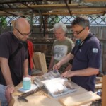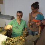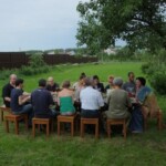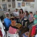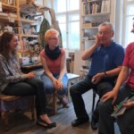 Draußen tobt ein Gewitter, so dass wir noch länger beisammen bleiben. Erste Gastgeschenke werden ausgeteilt, neue Projekte besprochen, Lösungen für den Transport von Kunstwerken angedacht.