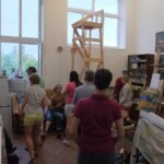 Der Besuch im Konjonkov-Museum muss leider ausfallen und nach dem verspätet eingenommenen Mittagessen gehen wir in das Atelier von Sascha Dolosov. Die Studierenden befragen Sascha zu seiner Vita und seinen aktuellen Werken. Es gibt rege Gespräche und ein Bild wechselt den Besitzer. In jeder Ecke des Ateliers sind Schätze verborgen und all diese müssen betrachtet werden.