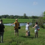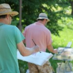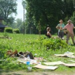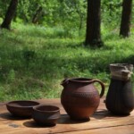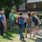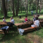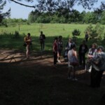 Über die Eisenbahntrasse Brest-Moskau kommen wir zu einem sehr schönen kleinen See. In einem großen Bogen wandern wir durch den kühlen Wald und erreichen schließlich einen Platz an dem ein Picknick für uns bereitet wird: Mittelalterliche Speisen (Buchweizen mit Schweinefleisch) wird über offenem Feuer gegart. Salate und ein Honigbier sowie Kräutertee stehen zum Verzehr bereit. Alles ist köstlich und der Direktor des Museums und seine Mitarbeiter informieren uns weiter über diesen Ort und die gefunden Gegenstände, die auch als Schmuckstücke angeboten werden. Da können die Damen. nicht widerstehen. Die Studierenden zeichnen Skizzen und wir schauen uns die Pflanzen an. Es ist eine sehr intakte Natur. Der Eine oder Andere gestattet sich ein Nickerchen.