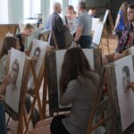 Nach der langen Nacht geht es heute mit Akt-, Protrait- und Studienmalerei in der Staatlichen Universität weiter. Drei Stunden werden unsere Preisträger, gemeinsam mit über vierzig Kunststudierenden der UNI, in einem riesigen Flur bei tollem Licht öffentlich arbeiten. Begleitet wird diese Arbeit von drei Professoren und einem Dozenten der UNI. Auch sie arbeiten mit.