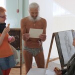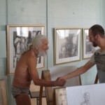 Das Aktmodell ist zur großen Überraschung aller ein fast 90-jähriger Mann, ein Veteran aus dem zweiten Weltkrieg, der drei Jahre in einem KZ in Deutschland verbringen musste. Dieser liebenswerte Mensch war ohne jeden Groll auf uns Deutsche. Und zu guter Letzt sprach er auch noch Deutsch mit uns. Er ist in Smolensk sehr bekannt, denn er arbeitet als Darsteller am Dramatheater.
