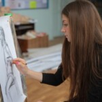 Es wurde intensiv gearbeitet, denn die besten Werke sollten prämiert und besprochen werden. Auf dem Flur herrschte eine interessante Arbeitsatmosphäre. Die Studierenden zeichnete und waren sehr auf ihre Arbeit fixiert.