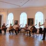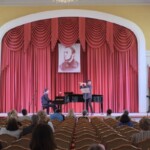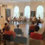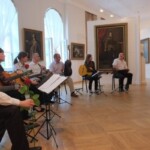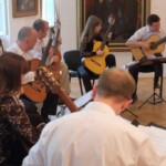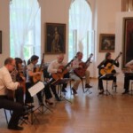 Victor Pawljushenko empfängt uns schon unten in der Gemäldegalerie an der Treppe. Wieder gibt es eine spezielles Konzert für eine Hagener Gruppe und das zur Eröfnung des Glinka-Festivals. Sieben Gitarren – das muss man selbst gehört haben. Spontan kommt mir der Satz von Thilo Heß, dem Bassisten von POWERONOFF, in den Kopf: „Ich möchte mal mit richtigen Gitarristen fotografiert werden“. Die Gitarrengruppen hat auch unsere Studierden begeistert und deshalb gab es noch einen Tango als Zugabe, aber Verena und Bernd haben nicht getanzt, obwohl der Tango doch ihre Leidenschaft ist.