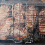 Aleksei teilt mit Sascha das saftige Schweinefleisch auf und jeder erhält eine ordentliche Portion.