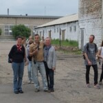 Inzwischen kennen alle das Torkin-Denkmal und sind auch pünktlich dort. Der komfortable Bus der Stadt Smolensk bringt uns zum Glaswerk nach Pervomaiski. Anatoli Rakitin, der Direktor erwartet uns schon hinter dem Eingangstor. Nachdem sich alle miteinander bekanntgemacht haben, gehen wir über einen großen Hof zu einer hohen Werkhalle. Der Hof ist von Grünanlagen gesäumt. Die angrenzenden Gebäude sind sanierungsbedürftig.
