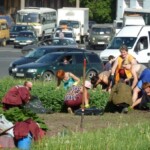 Je näher wir nach Smolensk kommen, um so weißer werden die grünen Wiesen. Welche Blumen sind das? Löwenzahn! Aber tausende „Pusteblumen“ zieren die Landschaft neben der Autobahn. Dieser Anblick ist grandios und mitten drin eine verfallene Tankstelle auf der auf riesigen Metallregalen überlebensgroße Plüschtiere präsentiert werden. Die Gegensätze, schon auf den ersten Kilometern nach Smolensk könnten nicht größer sein. Beim Verlassen des Stadtgebiets von Moskau sahen wir die riesigen Villen reicher Russen und unmittelbar daneben die kleinen Holzhäuser aus früheren Zeiten und furchteinflößende Hochhausburgen. Ich frage mich, ob diese Gegensätze von den Menschen hier noch wahrgenommen werden. Was wir auf der Autobahn sehen, erweckt nicht den Eindruck, dass es der Wirtschaft in Russland schlecht geht – vielmehr umgekehrt. LKWs dicht an dicht, zum Teil in Zweierreihen fahren in eine Schlange von über 300 Kilometern Richtung Moskau – wohlgemerkt an einem Sonntag.