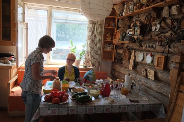 Zum Mittagessen treffen sich erstmals die Smolensker und Hagener Preisträger, aber auch unsere Gastgeber und Smolensker Mitglieder sind gekommen. Es herrscht alsbald eine tolle Stimmung, weil sich die Menschen schnell nahe gekommen sind. Sascha Savchenko lädt die ganze Gesellschaft für den Abend in sein Elternhaus ein.