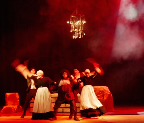 Bei der Besichtigung des Theaters durften wir schon die Kostüme zu diesem Stück bewundern – heute wird es Ernst.