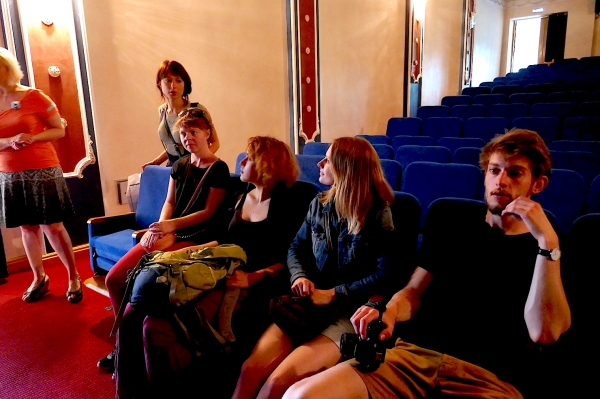 Heute Morgen besichtigen wir das Puppentheater. Irina, die stellvertretende Direktorin, erwartet uns bereits und stellt uns die junge Frau vor, die uns überall hinführen wird, auch in die Werkstätten, die Bühnenräume und zum Abschluss sitzen wir noch im Zimmer des Direktors Lapp zusammen und unterhalten uns noch ein wenig. Dabei spricht er eine Einladung für die Vorstellung am 03.06. aus – die Premiere von „Drei kleine Schweinchen“.