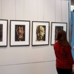 Sergej erwartet uns mit seinem Bus in Moskau-Domodedowo. Alsbald sind wir auf der Autobahn unterwegs – Sergej ist ein überaus rasanter Fahrer, aber sehr sicher. Trotz einiger Staus erreichen wir Smolensk in Rekordzeit. Elena, Ekaterina und Yury erwarten uns am Hotel Smolensk und fahren die Gruppenmitglieder zu den Wohnungen. Danach treffen wir uns zu einem ersten Imbiss in den schnuckeligen Restaurant Majakowsky. Köstliche kleine russische Spezialitäten bringen uns Kraft für eine kurze Stippvisite in der Gemäldegalerie. Wegen der guten Kontakte zur Galerie müssen wir kein Eintrittsgeld bezahlen. Sofort werden wir als Hagener Gruppe identifiziert und ein anwesender Fotograf begleitet uns durch Ausstellung. Im Treppenhaus präsentiert Aleksej Dovgan seine Künste. Die nachfolgenden Fotos geben ein Bild von diesem Abend.