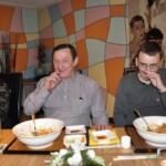 Alexander war vor kurzem in Indien und will es sich nicht nehmen lassen, indisch für uns zu kochen – das ist ihm bestens gelungen und zum Schluss kommt noch das gute Lomonossov-Porzellan auf den Tisch und wir lassen uns die von Terra mitgebrachten Torten schmecken.