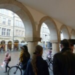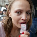 Mit der Straßenbahn rattern wir durch die Stadt – Alexandra hat einen Glücksfahrschein gezogen und muss ihn nun zerkauen und herunterschlucken, damit das Glück auch eintritt.