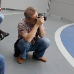 Sergej erlaubte uns die Nasen in jeden Winkel zu stecken – Requisiten, Kostüme, die digitale Schatztruhe des Fotografen mit den Bilder vieler, vieler Jahre, die Bilder an den Wänden, die interessante Technik am Boden und der Decke und, und, und ….. Alles dürfen wir untersuchen, besonders natürlich Leopold, dem es vorkommt wie im Fotografenschlaraffenland. Und so ist es auch Sergej erklärt alles mit viel Geduld und stellt anhand vieler Bilder seine fotografischen Schwerpunkte vor. Als Höhepunkt weiht er Leopold in die Geheimisse seiner Portrait-Kunst ein. Leopold ist in seinem Element und Sergej ein geduldiger Lehrer. Genau deshalb sind wir hier, um jungen Menschen Chancen einzuräumen, die sie nutzen können oder nicht – Leopold nutzt sie und Aleksej und ich schauen mit Freude zu – toll.