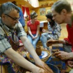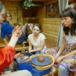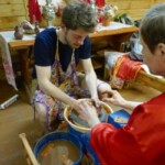 Im „Smolenkaja Isba“ lernen wir heute traditionelle Lebensart kennen, aber das Besondere ist der Workshop an der Töpferscheibe.