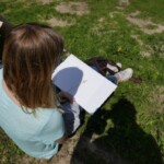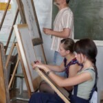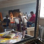 Nach dem Rundgang malen wir mit Stiften, Tusche und Ölfarbe, ein/e jede/r nach ihrem/seinem Geschmack. Wir suchen uns Motive und vertiefen uns in die Arbeit.