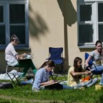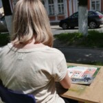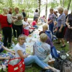 Mit Alexandra Kehl mache ich danach einen Spaziergang zum nahe liegenden See. Am Ufer haben viele Frauen eine Plane ausgelegt und darauf Speisen und Getränke drapiert. Sie haben eine so gelöste Stimmung, dass ich mich trau zu fragen, was sie hier machen und ob ich sie fotografieren darf. Es stellt sich heraus, dass es Bibliothekarinnen sind, die den Tag des Alphabets hier feiern. Wir probieren ein wenig von den Piroschkies und ein Schlückchen Saft und machen die erlaubten Fotos.