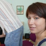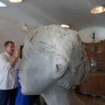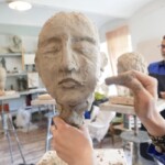 Immer wieder müssen wir das Werkzeug und unsere Hände reinigen, damit wir das richtige Gefühl für das Material in den Händen spüren. Zwei Stunden sind geschwind dahin und nach einer Pause geht es mit den Feinheiten weiter. Letztlich schaffen es alle, ein halbwegs ansehnliches Ebenbild des Modells zu gestalten. Parfeonov geht prüfend von einer Skulptur zur anderen und weist darauf hin, was gelungen ist und was verbesserungsbedürftig ist.