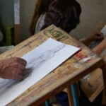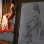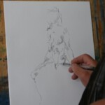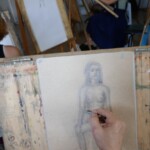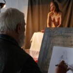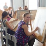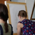 In der Staatlichen Universität warten Künstler (u.a. Professor A. Parfeonov, der Dozent Khramov, Aleksej Dovgan ……) Studierende und ein Aktmodell auf uns. Aktzeichnen steht auf dem Programm. Wieder hat der Kunstdozent Pjatkov diesen interessanten Programmpunkt für unsere Preisträger gestaltet. In zwei Sitzungen von je 45 Minuten kann das Modell in unterschiedlichen Posen und aus verschiedenen Perspektiven gezeichnet werden. Es wird nur wenig geredet, doch es wird uns erlaubt, auch zu fotografieren.