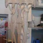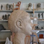 Nach einem kleinen Imbiss treffen wir uns an der Smolensker Staatlichen Universität. Wie schon vor vier Jahren haben wir wieder die große Ehre, mit Prof. Alexander Parfeonov eine Skulptur-Master-Class zu erleben. Für die Arbeit sind vier Stunden vorgesehen. Der Künstler führt uns in ein großes Atelier im Keller. Neben uns werden noch Studierende der Uni arbeiten und auch Aleksej Dovgan.