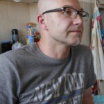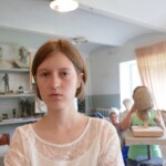 Aleksej kratzt die Farbe von der Leinwand, denn er ist unzufrieden mit dem Bild. „Jetzt ist es doch richtig gut“ erkläre ich ihm. Novospasskjoe abstrakt. Aleksej schaut noch einmal auf die Leinwand. „Du hast Recht“. Es entsteht historisches – Aleksejs erstes abstraktes Bild!!!!