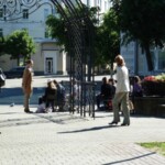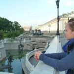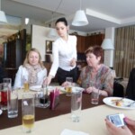 Bis zum Abschiedskaffee um 15 Uhr ist noch Zeit zum Bummeln. Auf der Oktoberrevolution-Straße treffe ich auf eine fröhliche Gruppe Studenten aus Berlin, die nach Smolensk gereist sind, um die Hochzeit eines Freundes mit einer Smolenskerin zu feiern. Sie sind baff, wie intensiv die Smolensker diese Feste feiern. Wir haben heute Morgen bereits sechs oder auch mehr Hochzeitspaare gesehen, die sich an vielen Sehenswürdigkeiten der Stadt fotografieren lassen. Man heiratet wieder in Smolensk und gründet gern eine Familie, denn es gibt eine Familienpolitik, die den jungen Familien Sicherheiten für die Zukunft garantiert. Deshalb nimmt die Geburtenrate ebenfalls stark zu – man sieht die Zukunft in Smolensk positiv!! In den dreizehn Jahren, die ich nach Smolensk reise, habe ich noch nie so viele schwangere junge Frauen im Stadtbild gesehen.