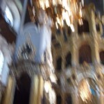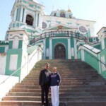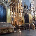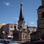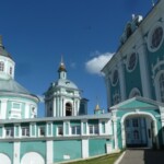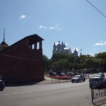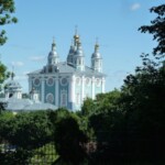 Der erste Rundgang dient der Übersicht in der Stadt. Michael und Alex lernen einige interessante Geschäfte und einen Andenkenladen kennen. Dann führt uns der Weg über die Sovjetskayastraße vorbei an der Bibliothek zur Kathedrale. Es ist gerade Gottesdienst und der berühmte Chor der Uspensky-Kathedrale singt hinter der riesigen vergoldeten Ikonenwand. Andächtig hören wir auf einer Bank sitzend zu. Zahlreiche Menschen, auch viele junge, nehmen an dem Gottesdienst teil – eine sehr besinnliche Stimmung, die uns für eine kurze Zeit in die eigene Gedankenwelt entführt – innehalten, entspannen, an liebe Menschen denken, Kerzen kaufen und anbrennen. Von der Stimmung ergriffen treten wir in das gleißende Sonnenlicht. Ein Foto unterhalb der großen Treppe mit Blick auf die imposante Kathedrale muss sein.