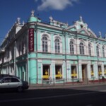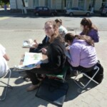 Durch den schattigen Glinkapark spazieren wir zum Puppentheater und an jeder Ecke arbeiten malende Kinder und Jugendliche mit ihren Lehrern. Schon am Eingang werden wir vom Direktor und seiner Stellvertreterin erwartet. Verschiedene Menschen werden uns vorgestellt und man informiert uns über das Theater. Um 11 Uhr beginnt die Vorstellung „Giraffe und Nashorn“, ein altes Stück von einem deutschen Autor. Die zweihundert Plätze sind fast alle besetzt, die Kinder sind begeistert und gehen toll mit. Zwei kleine Mädchen möchten gar auf die Bühne springen, doch die ist zu hoch und so bleiben sie mit glänzenden Augen staunend von der Bühne stehen. Die vier Darsteller vermitteln den Kindern temperamentvoll und witzig mit diesem Stück, dass es nicht auf das Äußere Erscheinungsbild ankommt, um einen Menschen zu lieben oder von ihm geliebt zu werden, sondern allein auf die Menschen und Ihre Gefühle. Tosender Applaus folgt.