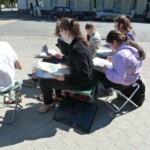 Nach kurzer Stippvisite im Rathaus, geht es eilends zum Hotel. Auf dem Weg dorthin treffe ich am Ausgang des Glinkaparks auf eine Gruppe malender Schüler. Die kleine Gruppe wird von einer Professorin betreut, die es sich nicht nehmen lässt in ihrer Freizeit Malschüler zu unterrichten. Die Schüler sind mit großer Freude bei der Sache!!!