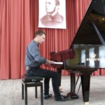 Der Zerberus in der Philharmonie ist beim zweiten heutigen Besuch nur sehr schwer zu passieren, aber es gelingt uns doch und so können Alex und Michael auch Aleksejs Ausstellung bewundern. Beim Anblick der Bühne kann Micheal nicht widerstehen, dem Flügel ein paar Töne zu entlocken – klingt selbst bei ihm schweigend toll.