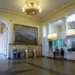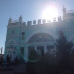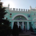 Alex und Michael möchten noch gern den Smolensker Bahnhof sehen. Lena fährt uns kurz entschlossen hin. Dieses von innen und außen mehr als beeindruckende Bauwerk ist der letzte Eindruck, den wir von Smolensk mitnehmen.