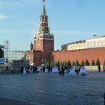 Vom Roten Platz kommen uns Paare in Abendkleidern und Frack entgegen und nachdem wir den Patz erreichen haben, sehen wir, dass es hier einen Ball unter freiem Himmel gegeben haben muss – es erinnert an den Opernball in Wien. Noch immer tanzen viele Paare auf dem holperigen Pflaster, doch ihre Bewegungen sind alles andere als holperig – welch ein Anblick: Russlands junge Menschen tanzen auf dem Roten Platz!! Keine Polizei, kein Militär, keine Journalisten; nur tolle junge Menschen, die Freude am Tanzen und Leben haben!
