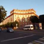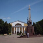 Zurück über den Dnjepr gehen wir die steile Straße hinauf, die parallel zur Sovjetskaya verläuft. Auch hier eine Neuerung. Schöne kleine Einfamilienhäuser und ein Hotel sind entstanden. Am Tenesheva-Kulturzentrum werden vier Veranstaltungen für diese Tage beworben.