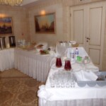 Wir erwarten zum Schwedischen Tisch unsere Smolensker Mitglieder. Dieses gemeinsame Essen hat inzwischen Tradition und es kommen tatsächlich 50 % aller Smolensker Mitglieder unseres Vereins. Alle berichten über ihr persönliches Befinden und das ihrer Familien und sind neugierig zu hören, was wir demnächst unternehmen werden. Es geht lebhaft zu und leckere Speisen und Getränke werden verputzt. Aleksej weist darauf hin, dass gerade eine Ausstellung seiner Bilder in der Philharmonie eröffnet wurde und schlägt einen kurzen Abstecher dahin vor. Doch Michael und Alex möchten zunächst in den am Morgen entdeckten Andenkenladen.
