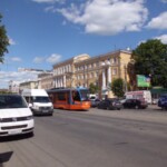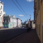 Mit der Straßenbahn rattern wir zum Mittagessen – „Ihr seid die einzigen Fremden, die mit unserer Straßenbahn fahren“, meint Katja. Für uns ist eine Fahrt mit der Smolensker Straßenbahn ein MUSS. Nach wenigen Minuten hält die Bahn in der Nikolajevastraße. Alte Frauen verkaufen dort noch Maiglöckchen in dicken Sträußen und alles Mögliche, was Vorratskammer und Garten noch oder schon wieder hergeben. In der Mittagszeit drängen sich die Menschen auf den breiten Gehwegen, einige wollen etwas in nahegelegenen Geschäften einkaufen oder eines der Cafés oder Restaurants aufsuchen.