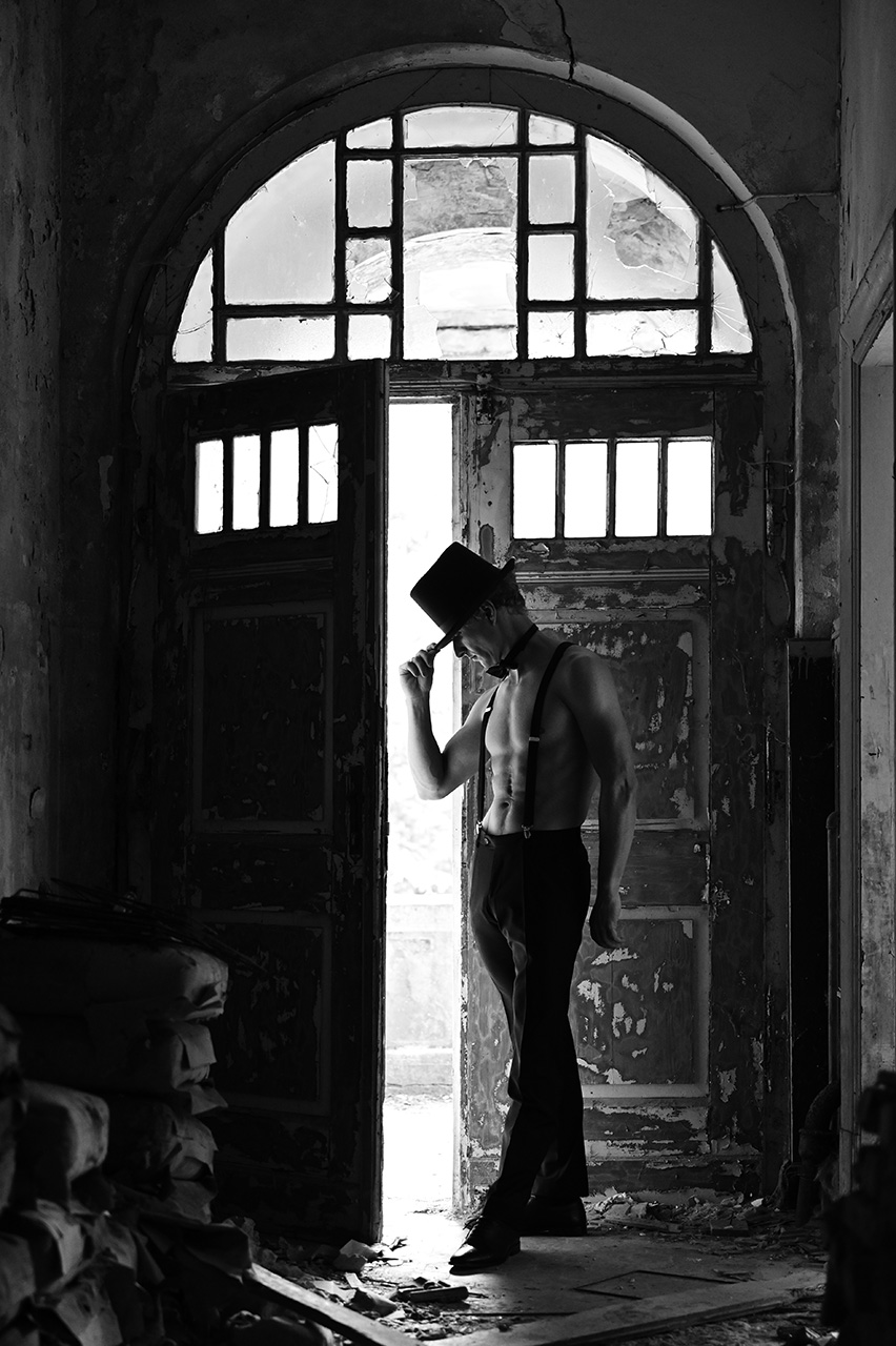 „Den uralten Traum von ewiger Jugend und Schönheit konfrontiert der Fotograf Bernd Mueller mit der Realität des Alterns, des Verwitterns, der Zerstörung und dem Untergang. In Mitten von postindustriellen Trümmern wird Harmonie zeitgleich zum Außenseiter und zum Mittelpunkt. Ein Ausdruck des Übergangs von Ordnung zum Chaos, der wie ein Pendelschlag wieder dahin zurück kehrt. Doch neben der depressiven Sicht ist auch die hoffende Interpretation zulässig. Das Leben, welches sich die trostlose Wüste zurückerobert, urbanisiert und Gevatter Tod in seine Schranken verweist. “